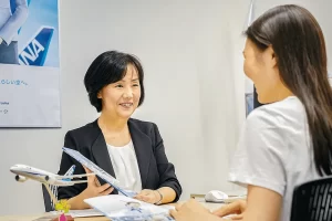 航空業界を目指す学生の支援をする専用ルーム「ANAルーム」。業界に詳しいカウンセラーが常駐